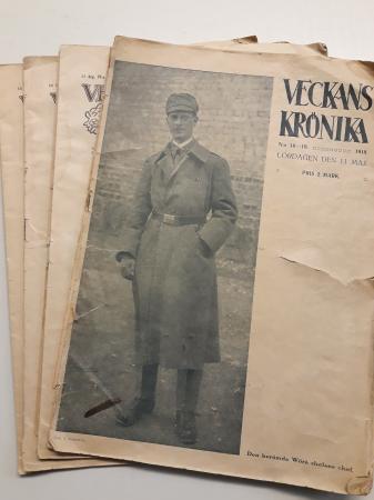 ”Veckans krönika, illustrerad veckoskrift”. Fyra nummer från 1918.