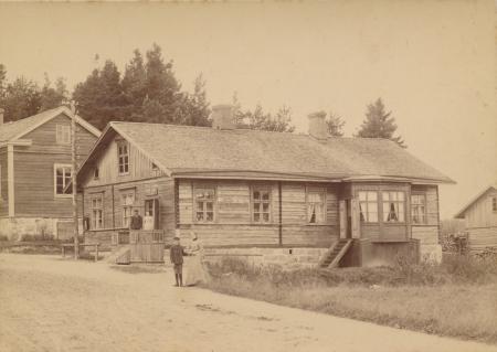 Sockenstugan och framför en lanthandel.