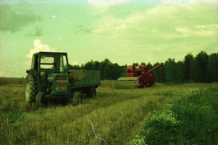 Skördearbete på Thomas gård eller officiellt Bak-Tuomola i Evitskog.