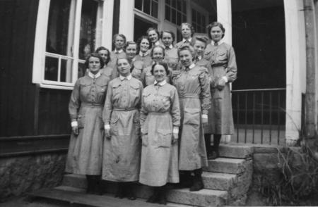Lotta-Svärd utrustningskurs på Nägels folkskola i Kyrkslätt under juli 1941.