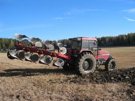 Höstplöjning år 2005 med en Case International traktor i Ängeslandet i Hindersby Teglas. Teglas hemman i Hindersby har tillhört Korkkulla gård allt sedan 1600-talet då Korkkulla blev ett rusthåll.