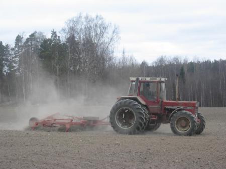 Harvning med International 956 XL traktor på Storåkern.