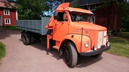 På Korkkulla gård till museifordon renoverad Scania lastbil från 1970-talet.