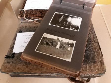Samling 1014, arkivbildare Kaarina och Åke Lesch, svartvita fotografier från Strömsby gård. 7 album, 296 bilder, 1923-1929. I albumen finns anteckningar om plats och datum.