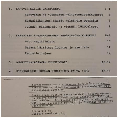 1061 Donator okänd. Duplicerad utredning: ”Kantvikin satamataustoja. Huhtikuu 1994. Pro Strömsby Ry”. Motstånd mot planerad storhamn i Kantvik.