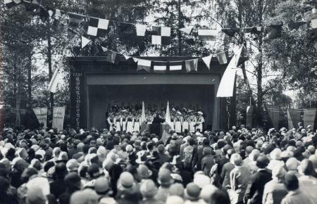 Af det synnerligen rikhaltiga och omvexlande programmet må framhållas: Prolog, Kvartettsång af M.M:iter, Hornmusik af Kyrkslätt 3 musikkapell, Deklamation, Kupletter, Kostym- & Nationaldanser, Bygdemålsberättelser och Harmonikalåt utföras i kostym af Johan från Skansen i Stockholm; Idrottstäflingar, Dans och lekar m. m.