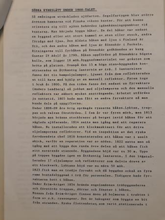 1097 Donator: Solveig Ekman. Duplicerad historik, 17 maskinskrivna sidor. En kortfattad historik över södra Kyrkslätt under 1700, 1800 och 1900-talet sammanställd av Oskar Lundberg på Räfsö 2002.
