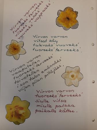 På bilden verser (på finska) för risande med påskris insamlade år 1994. Element av den nuvarande traditionen (fi. virpominen) härstammar från Karelen.