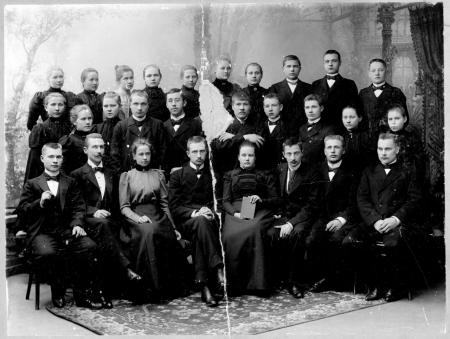 Klassfotografiet har tillhört Irene Wikstedt född 1883 på Tolls Övergård i Kyrkslätt som var en av eleverna och senare som gift Irene Pihlström. Finns folkhögskolas rektor Arvid Mörne sitter i mitten på första raden. Irene är antagligen andra från vänster i andra raden.