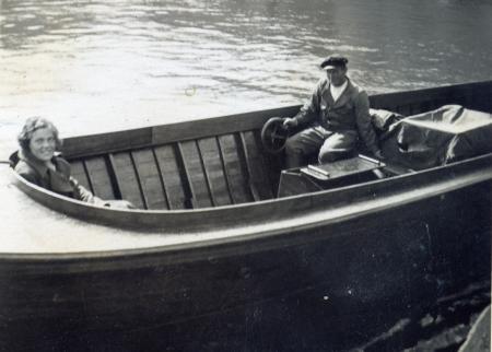Hjördis med sin bror Tor Lönnberg i familjens fiskebåt.