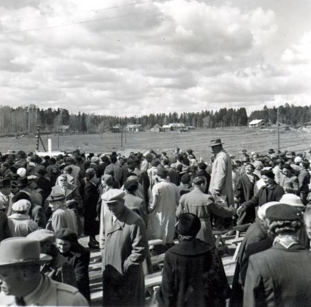 Folksamling kring hjältegravarna i Kyrkslätt.