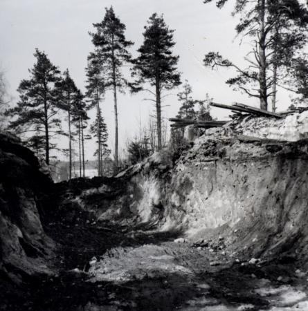 Källarbacken för Gamla Hindersbyvägen i Jolkby sänks ordentligt vintern 1959-1960.