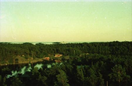 Vy från Tullandet över Kyrkogårdsön mot Finska viken.