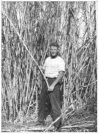På bilden skär den i Lappböle födda Ragnar Westerholm sockerrör i North Queensland, Australien.
