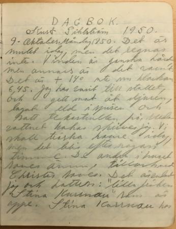 Dagbok 9.10.1950 - 18.11.1950