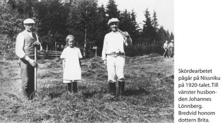 J. Lönnberg 50 år. Senaste söndag fyllde innehavaren av Nissniku hemman i Masaby J. Lönnberg 50 år. Vid ovanligt unga år övertog Lönnberg hemgården, sedan densamma under några år skötts av en arrendator. Ortsbefolkningen hälsade den unga husbonden med glada känslor, varför det icke ligger någon överdrift i påståendet, att han varit omtyckt av byborna ända från barndomen. Och allmänt har man ansett den sympatiska och alltid lugna egendomsinnehavaren för en utmärkt husbonde. Men det fordrades också mycken energi, ett vaksamt öga och gott förstånd för att klara sig. När grannarna drucko sitt morgonkaffe, såg man den unga husbonden köra sin mjölk till stationen. Och detta fortgick ofelbart dag efter dag och år efter år. Efter hemkomsten gick han sedan dagligen i spetsen för sitt folk till arbete på åker och äng. Ihärdigt arbete och försakelser ledde fram genom ekonomiska och andra svårigheter. Omkring 30 år har husbonden själv lett arbetet, om också sönerna nu biträda och något lätta arbetsbördan. Icke alltid hava åkrarna å Nissniku legat, så väl planerade och dränerade som nu.