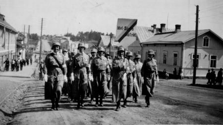 Nylands södra Lotta Svärd-distrikt på marsch i Tavastehus år 1939.