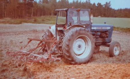 Trädan på Nyängen i Korkkulla harvas med en Ford traktor år 1977.