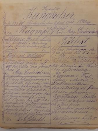 Samling 1008 har donerats av Keijo Turunen och består av ströexemplar av tidskriften ”Kyrkslätt kungörelser” från åren 1898, 1899, 1901, 1902, 1903. Tidskriften är handskriven och utgavs av folkskolläraren A N Winell.
