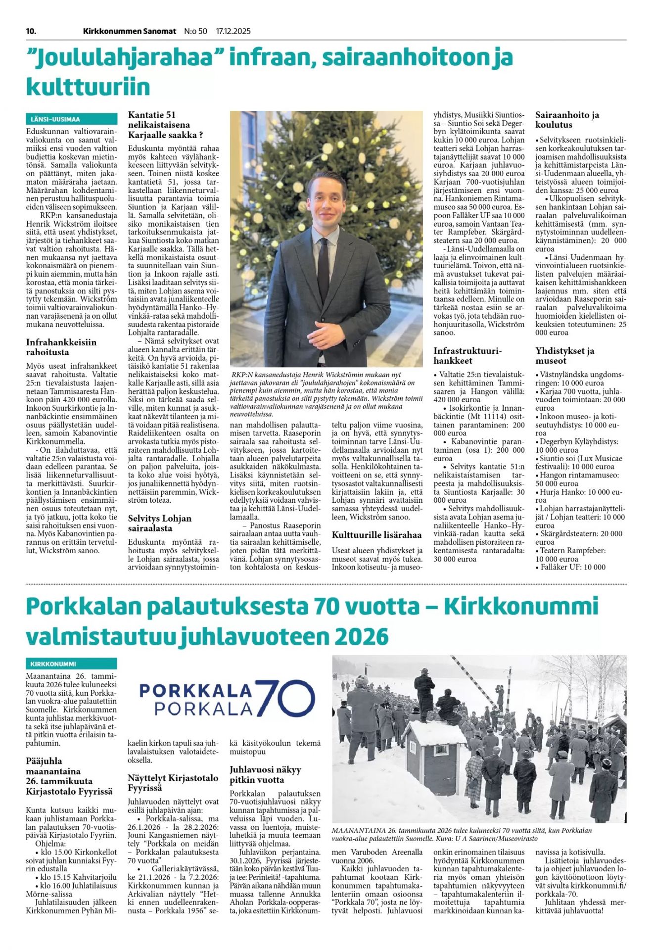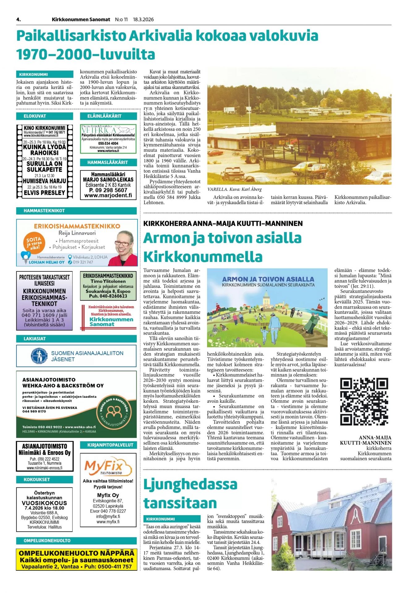 Bild i Kirkkonummen Sanomat om kommunens och Arkivalias utställning i Fyyri